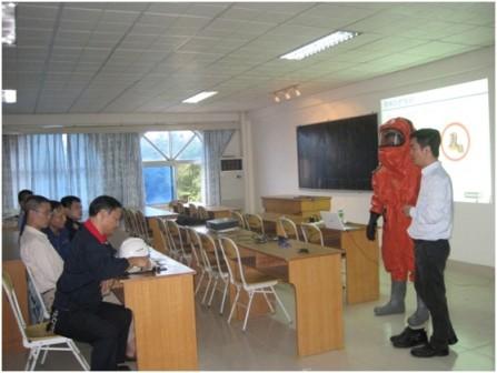 2013年11月22日,我司邀請法國代爾塔(中國)安全防護(hù)有限公司高級培訓(xùn)師韓偉嘉先生為我司員工講解如何正確穿戴使用法國代爾塔氣密外置重型防化服,參加這次培訓(xùn)的人員主要來自水廠維護(hù)部與米鋪水廠,共計26人。