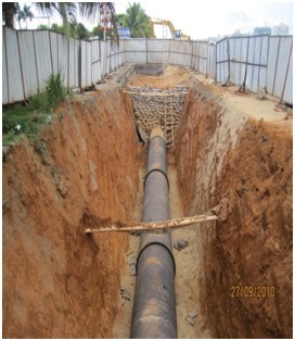 國興大道西段南側(cè)DN1400、DN1200供水管道遷移改造工程是由??谛鲁菂^(qū)建設(shè)開發(fā)有限公司和??谕⒀潘畡?wù)有限公司共同投資建設(shè)的重點(diǎn)管網(wǎng)工程。工程從2011年6月開始建設(shè),全長2137米,其中DN1400管長740米,DN1200管長1397米,是米鋪水廠通往龍昆南方向的供水主管道,全部用球墨管和鋼板管敷設(shè)完成。