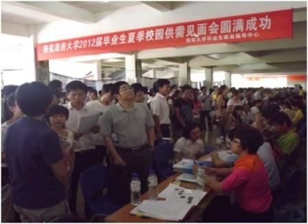 為提高公司在社會(huì)及海南各大院校的知名度,并為公司招募優(yōu)秀、合適的人才,為公司的可持續(xù)性發(fā)展做好人力資源儲(chǔ)備, 2012年5月13日,公司參加了由海南大學(xué)組織的2012年大學(xué)畢業(yè)生供需見(jiàn)面會(huì),進(jìn)行了公司的首場(chǎng)校園招聘會(huì)。