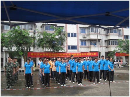 2012年6月21日,??谑兴畡?wù)集團(tuán)組織舉辦的消防應(yīng)急演練比賽在我司米鋪水廠籃球場(chǎng)順利舉行。