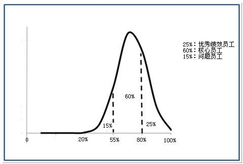 圖2.理想績(jī)效評(píng)估結(jié)果正態(tài)分布圖
