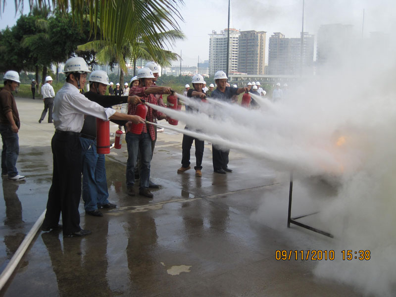 演練開始前,主管生產(chǎn)的梁安平副總經(jīng)理對大家講述了消防安全在日常生產(chǎn)工作及生活中的重要性,并希望大家認(rèn)真學(xué)習(xí),掌握基本的應(yīng)急滅火技能,提高自救能力。接著由環(huán)保健康安全部消防安全管理員王永河向大家現(xiàn)場演練了滅火器、水槍的操作程序。最后,隨著梁安平副總經(jīng)理一聲“開始”的命令下,全體參與人員按照制定的演練方案進(jìn)行使用滅火器、水槍撲救火災(zāi)的滅火演練。