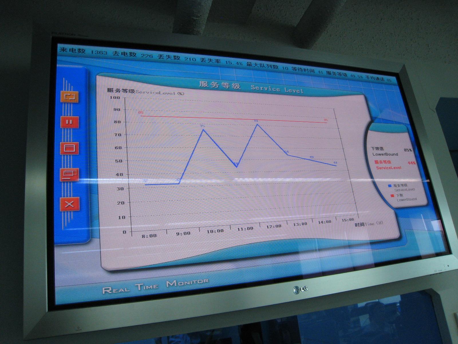 在公司領(lǐng)導(dǎo)對客戶呼叫中心價值的高度重視下,公司于09年7月25日與上海三高計算機(jī)股份有限公司簽定了更換呼叫熱線系統(tǒng)的合同,為更大化地發(fā)揮客戶呼叫中心的價值提供了有效平臺,同時新系統(tǒng)配備的話務(wù)電子屏也直觀地展示了客戶呼叫中心的各項(xiàng)話務(wù)指標(biāo)和整體話務(wù)情況,為更好地進(jìn)行現(xiàn)場管理及監(jiān)控提供了先進(jìn)工具。合同約定新系統(tǒng)開發(fā)從8月1日開始,歷時3個半月完成。