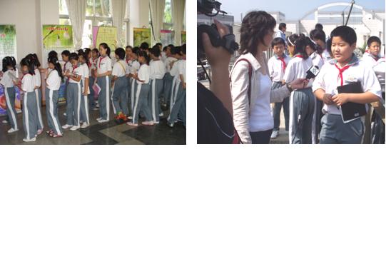 下圖為學(xué)生在污水廠參觀及央視新聞聯(lián)播記者現(xiàn)場(chǎng)采訪學(xué)生代表