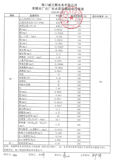 2021年11月??谕⒀潘畡?wù)有限公司米鋪水廠出廠水水質(zhì)監(jiān)測(cè)月報(bào)
