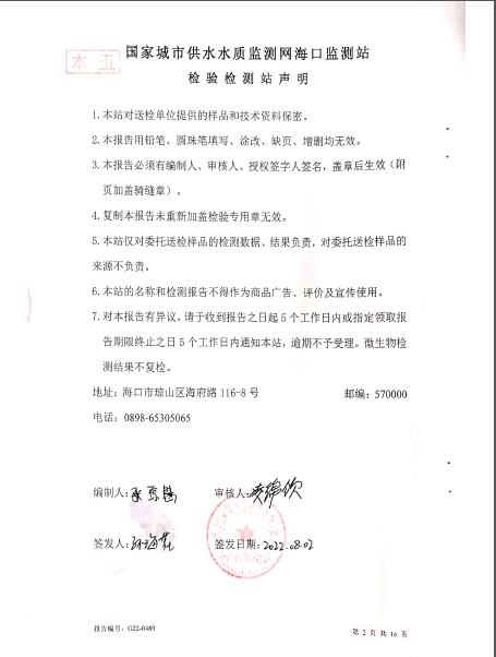 2022年08月05日海口威立雅水務(wù)有限公司