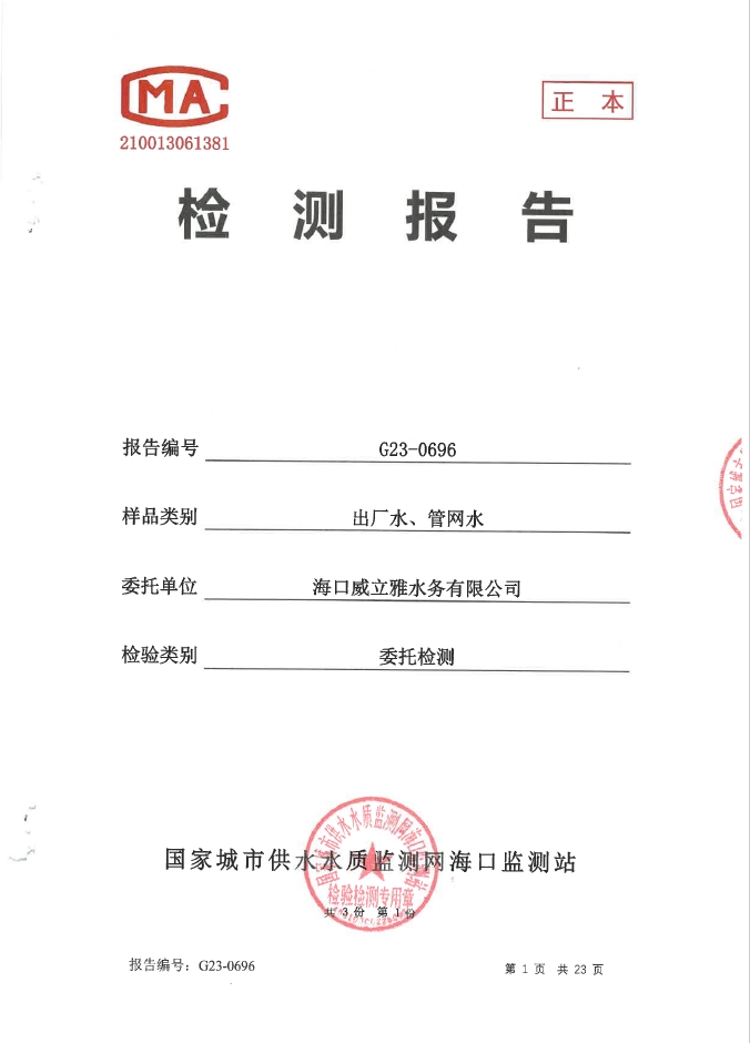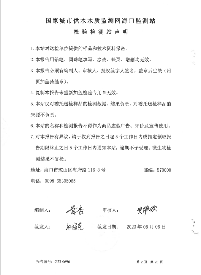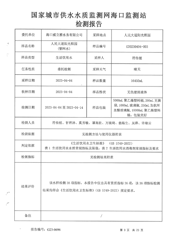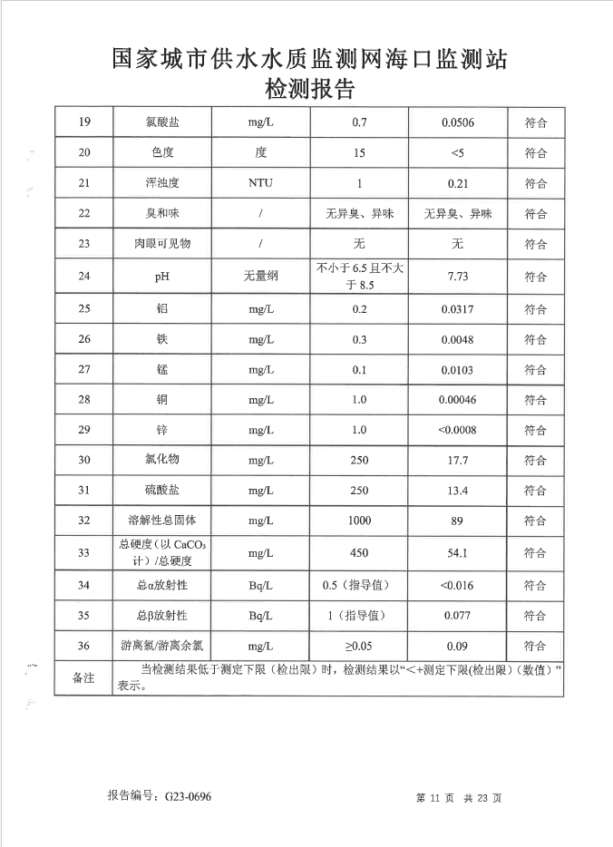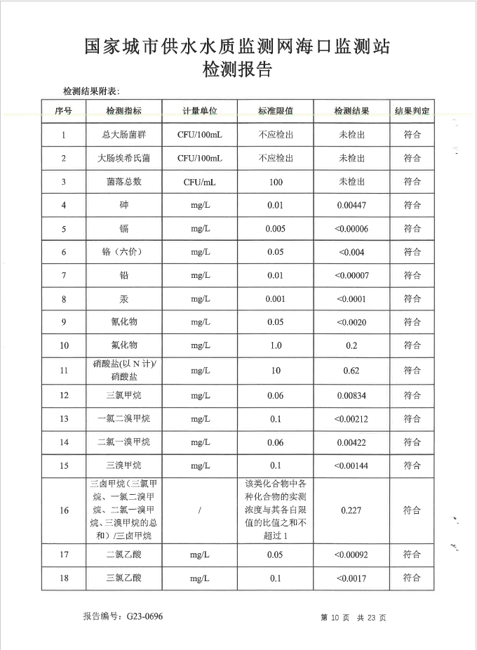 2023年4月??谕⒀潘畡?wù)有限公司管網(wǎng)水水質(zhì)檢測月檢報(bào)告