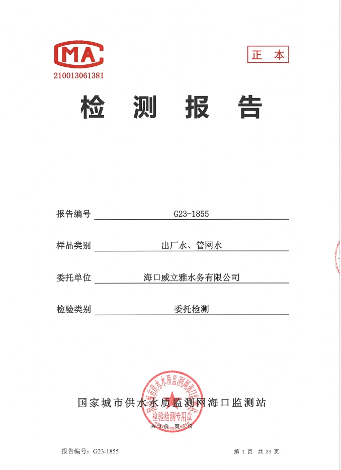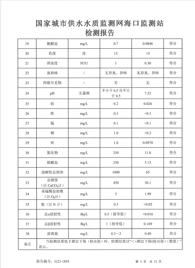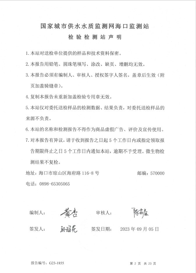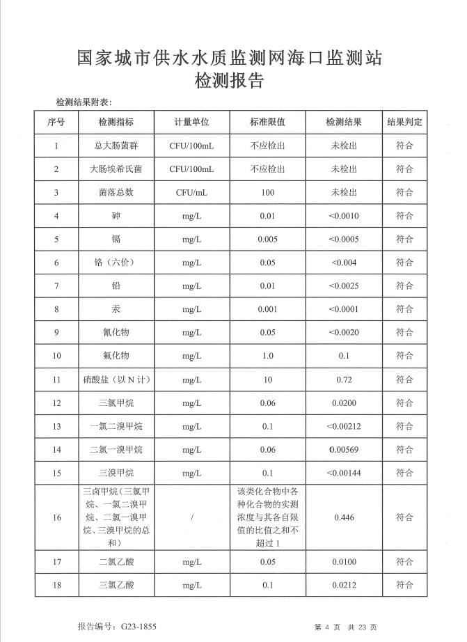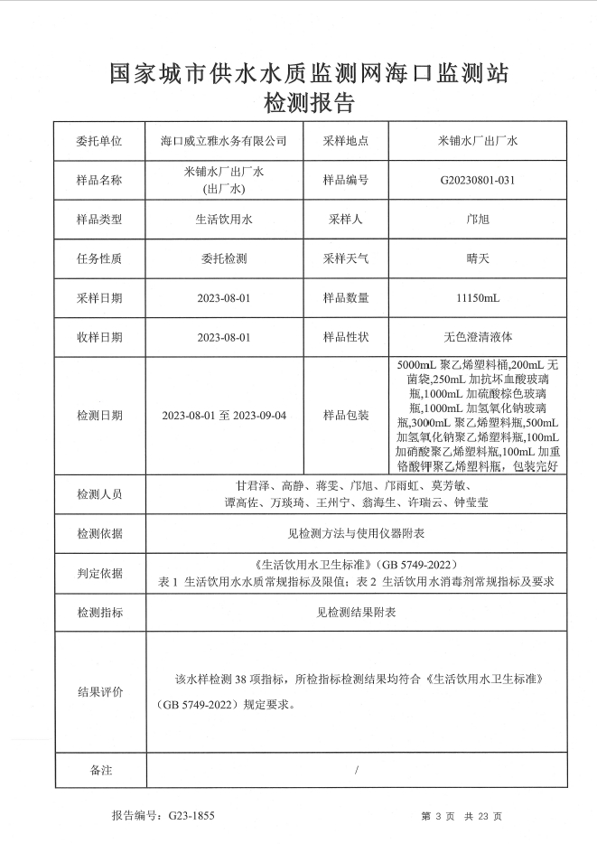 2023年8月??谕⒀潘畡?wù)有限公司米鋪水廠出廠水水質(zhì)檢測(cè)月檢報(bào)告