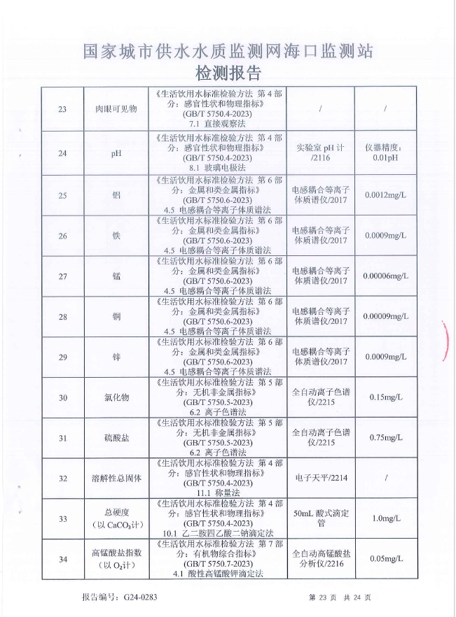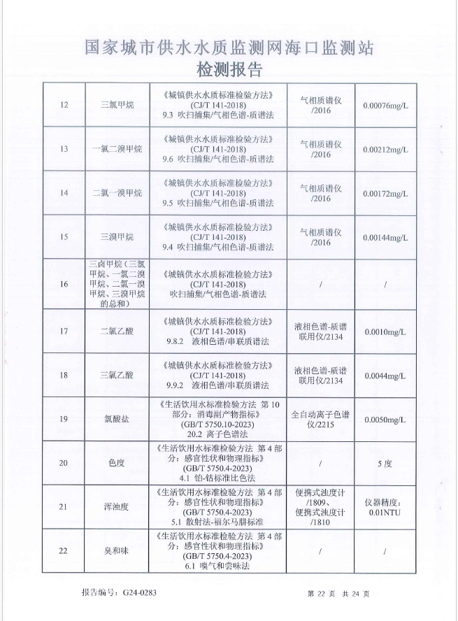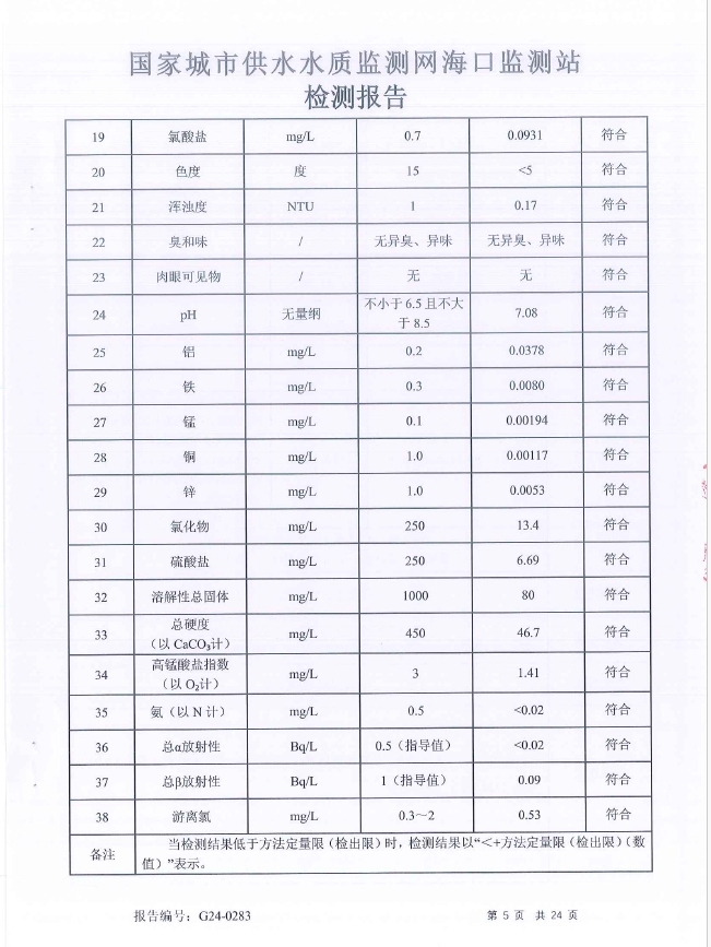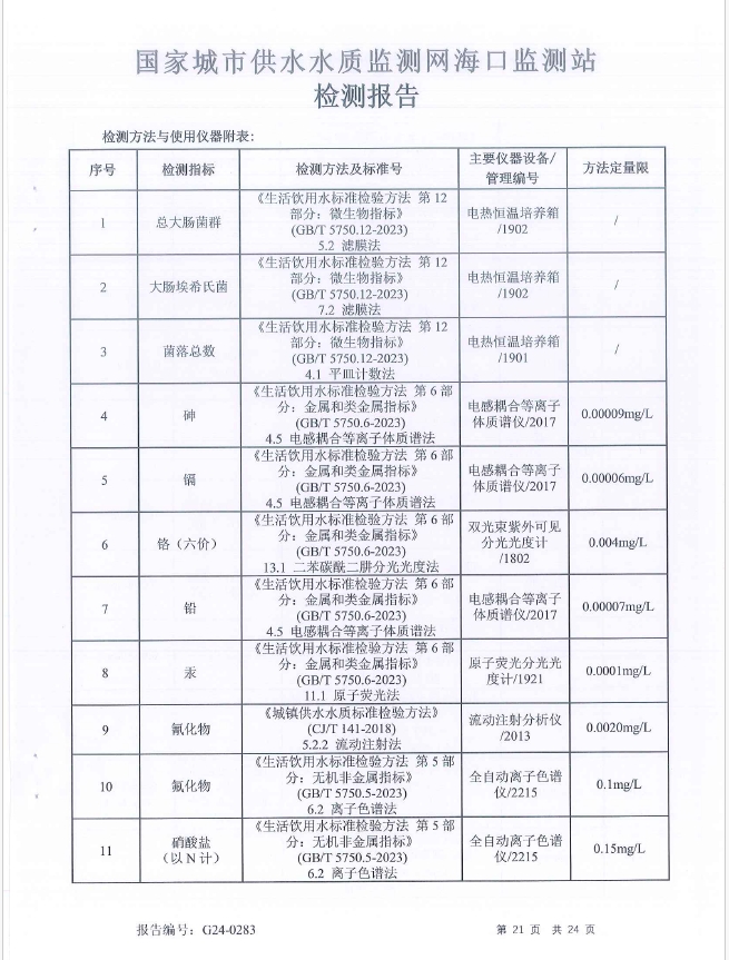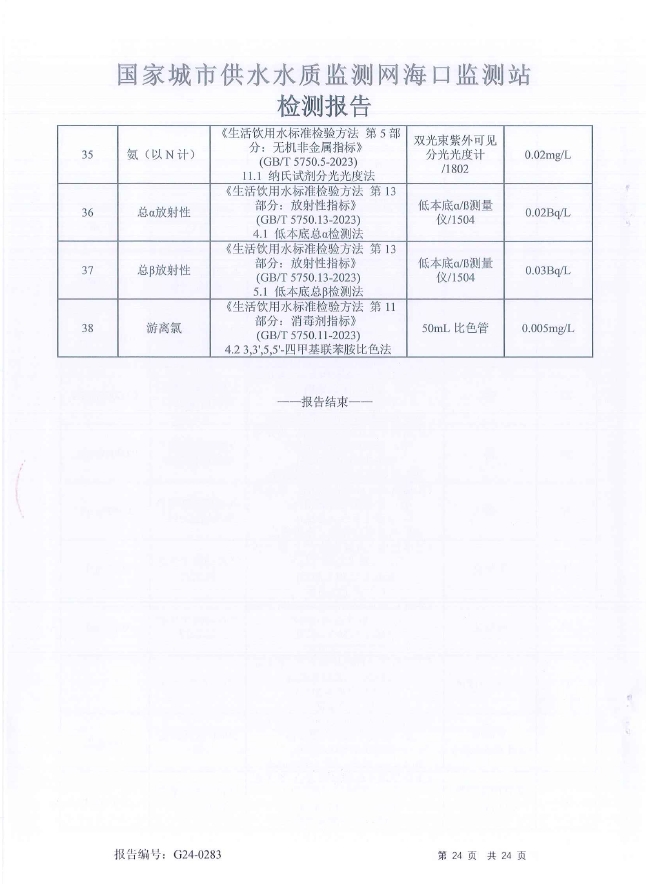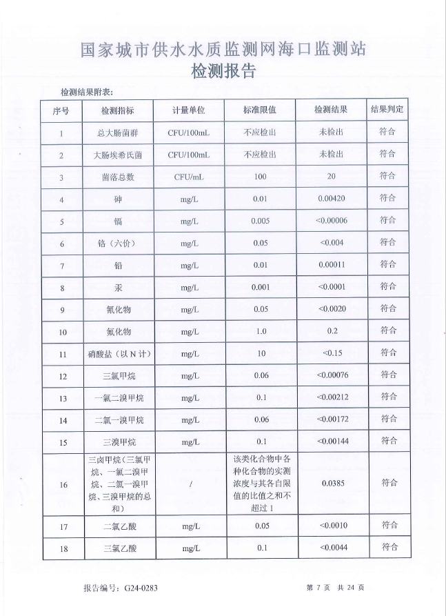 2024年2月海口威立雅水務(wù)有限公司米鋪水廠(chǎng)出廠(chǎng)水、管網(wǎng)水月檢報(bào)告