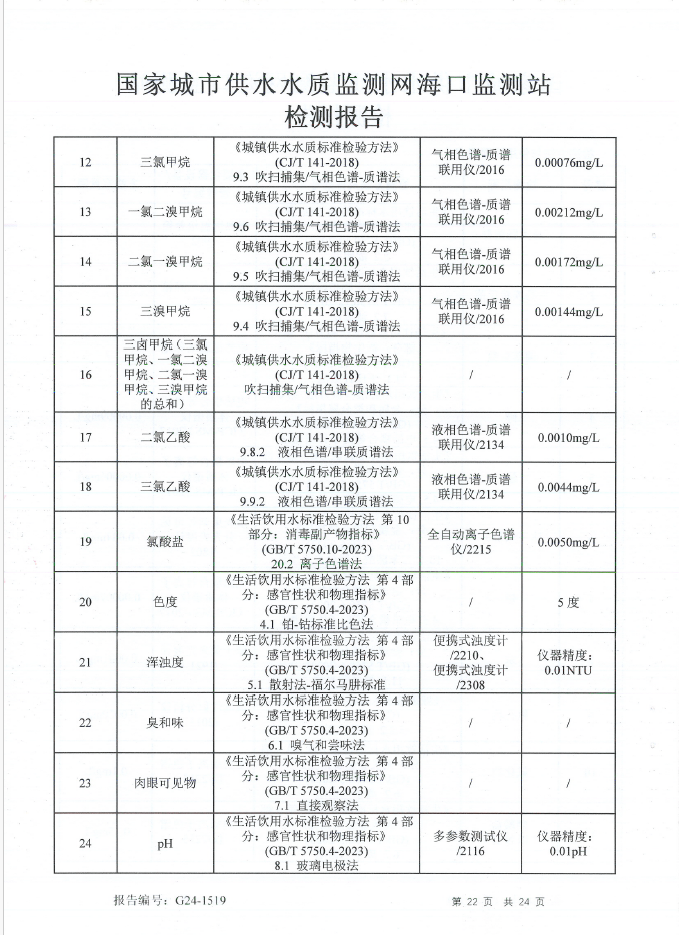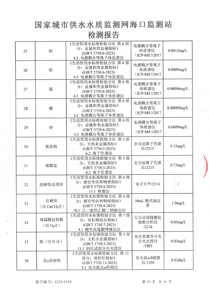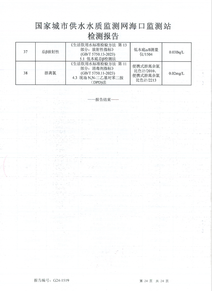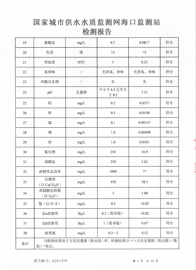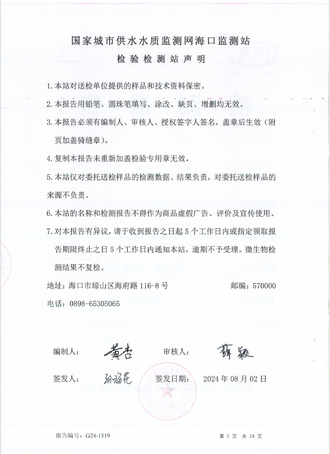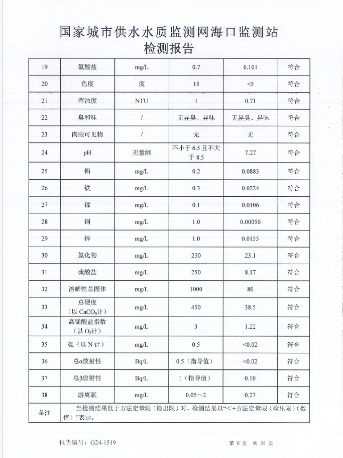 2024年7月恒源水務(wù)有限公司米鋪水廠出廠水、管網(wǎng)水月檢報(bào)告