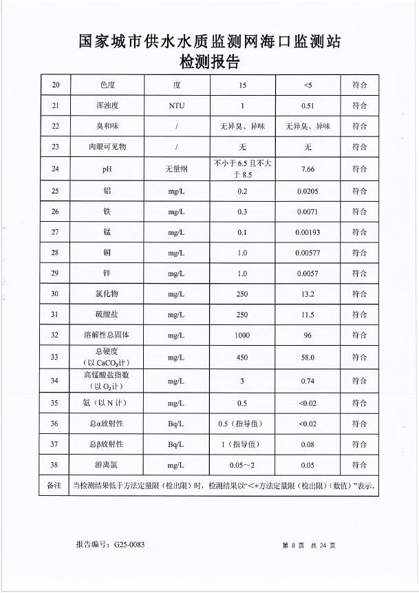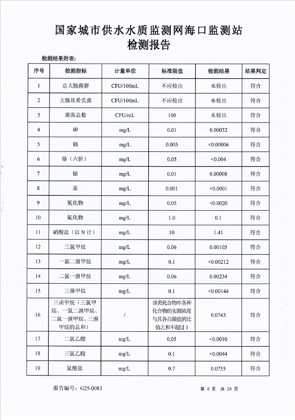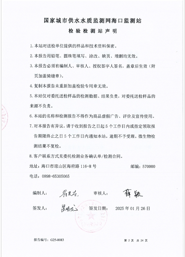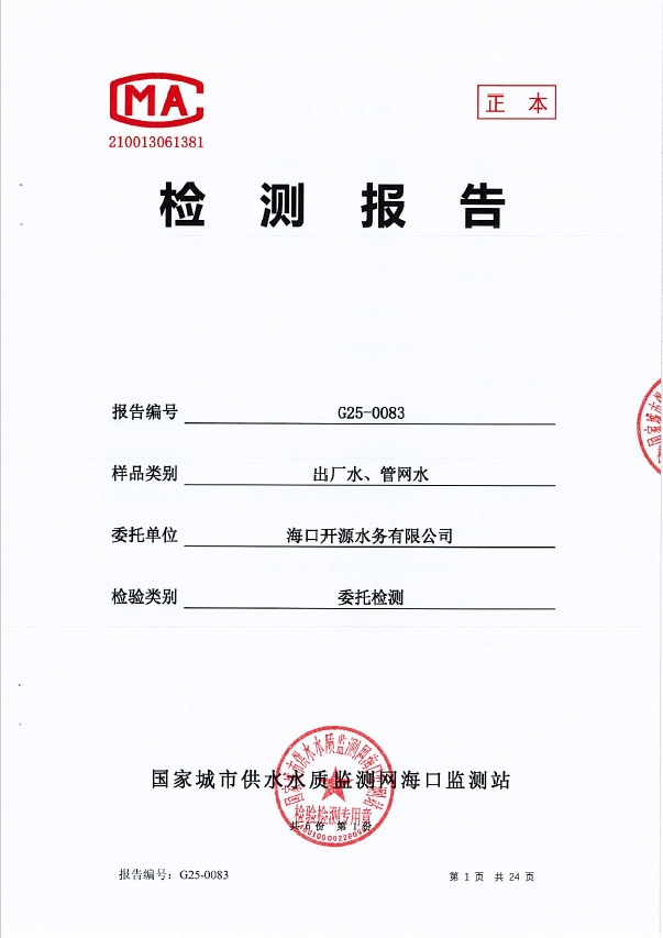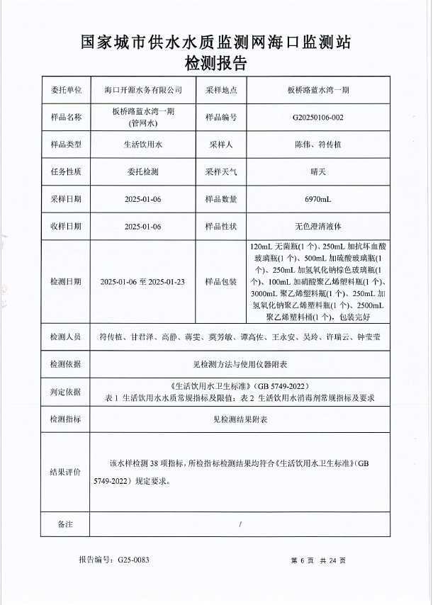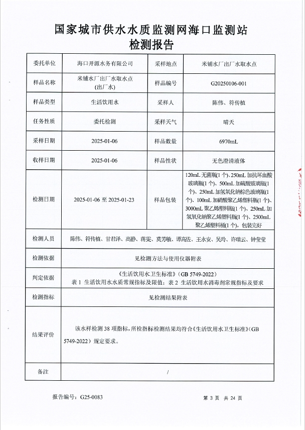 2025年1月開源水務(wù)有限公司米鋪水廠出廠水、管網(wǎng)水月檢報(bào)告