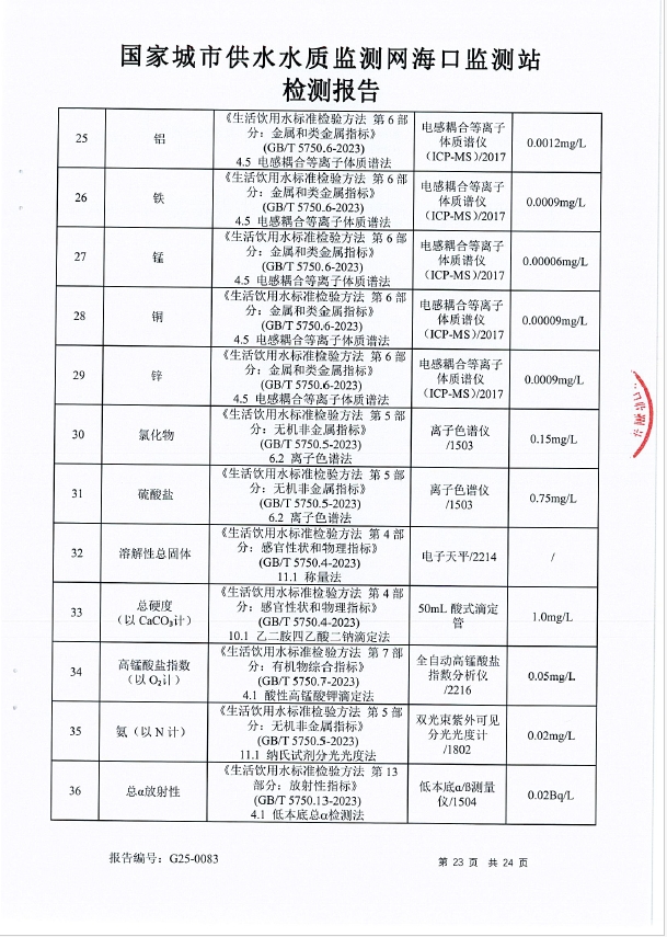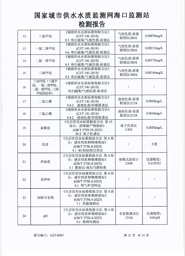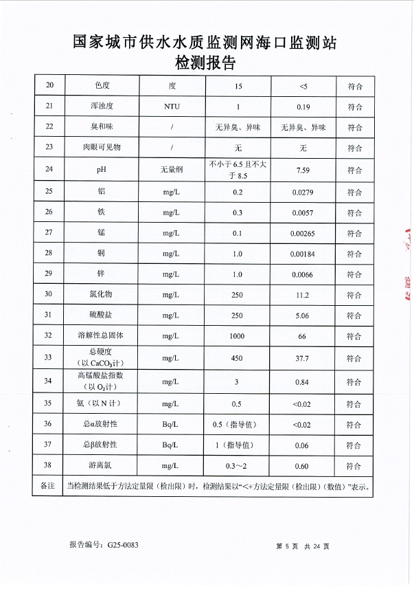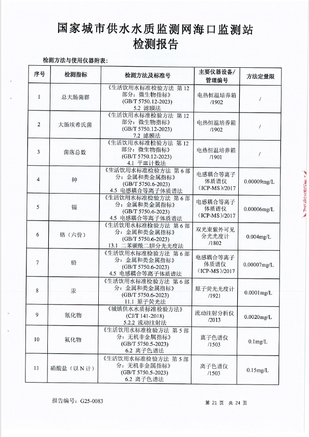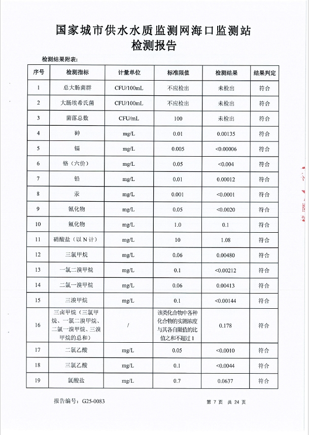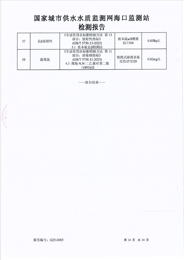 2025年1月開源水務(wù)有限公司米鋪水廠出廠水、管網(wǎng)水月檢報(bào)告