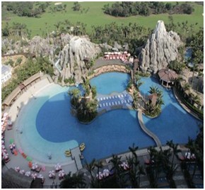 傍晚我們拖著疲憊的身軀,體驗了酒店里亞洲最大火山巖礦溫泉主題公園內(nèi)具有全球六大洲風格的火山巖礦溫泉。各個風格不同、功能各異的主題區(qū)由一條全竹結構的“龍脊長廊”連通著。在亞洲區(qū),人們可以體驗具有中國、日本、韓國、印度等各國特色的“熱帶東方”、“東方禪意”等主題溫泉。而美洲區(qū)推出“炙熱熔巖”、“狂野西部”和“亞馬遜河域”,具有滋潤肌膚、消除疲勞的功效。非洲區(qū)的“迷城”卻能把人們的想象引入一個未知世界……