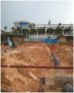 國興大道西段南側(cè)DN1400、DN1200供水管道遷移改造工程是由??谛鲁菂^(qū)建設(shè)開發(fā)有限公司和??谕⒀潘畡?wù)有限公司共同投資建設(shè)的重點(diǎn)管網(wǎng)工程。工程從2011年6月開始建設(shè),全長2137米,其中DN1400管長740米,DN1200管長1397米,是米鋪水廠通往龍昆南方向的供水主管道,全部用球墨管和鋼板管敷設(shè)完成。