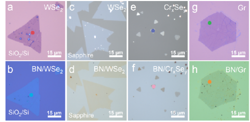 图2.在多种衬底和2D材料表面实现a-BN盖层的生长证明了该技术的普适性。