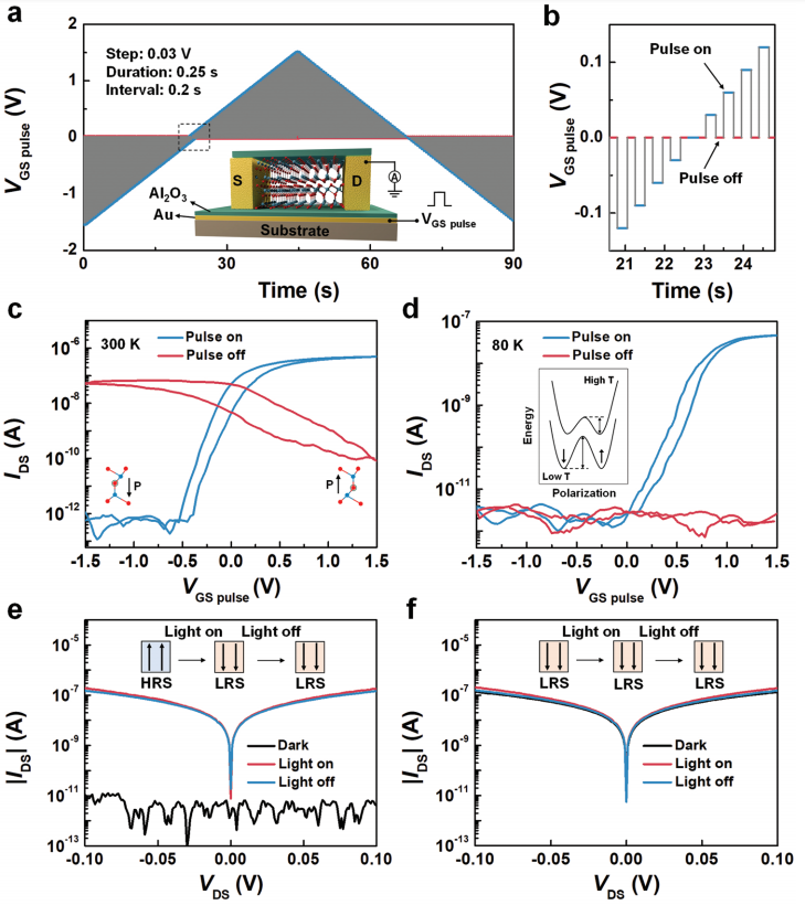 图1. 采用电压脉冲测试模式测量的铁电半导体光电晶体管的光电性质。