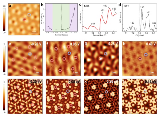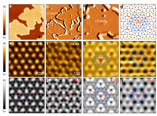 图2. 单层类笼目结构材料CT-MoTe2的制备及其两种不同周期电子结构的STM表征