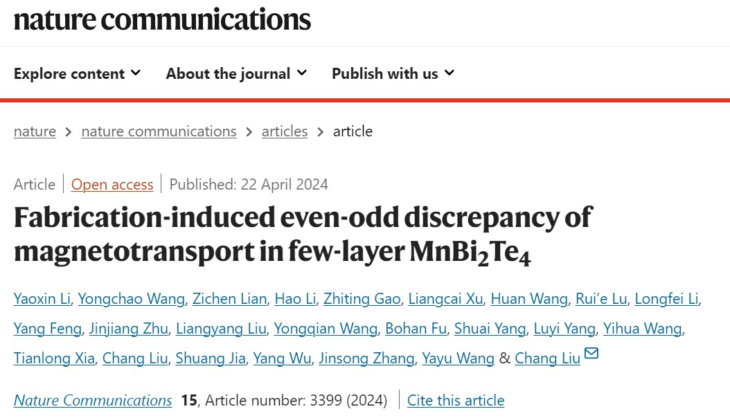 近期,yl7703永利集团官网物理学系、量子态构筑与测控教育部重点实验室刘畅副教授联合人大-清华-北大-复旦-南科大等九个团队,利用光学-输运-磁光-成像等多种实验手段,研究了超过200块微纳器件的量子物性,首次揭示微纳加工会对MnBi2Te4的有效层厚产生显著影响。这一重要发现指出了二维材料领域中广泛采用的通过光学对比度确定层厚的方法存在的不足,解决了长期以来MnBi2Te4领域实验观测到的反常奇偶层振荡的争议。相关研究成果以“Fabrication-induced even-odd discrepancy of magnetotransport in few-layer MnBi2Te4”为题发表在2024年4月22日Nature Communications上。