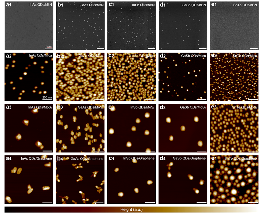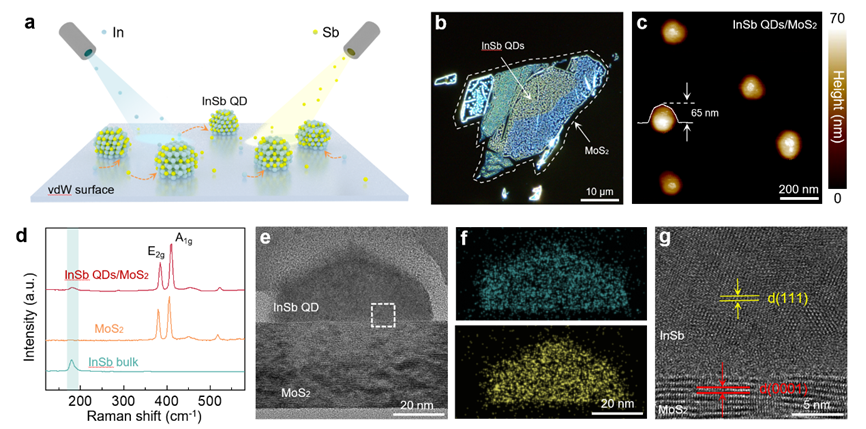图1:InSb量子点在MoS2表面的范德华外延生长