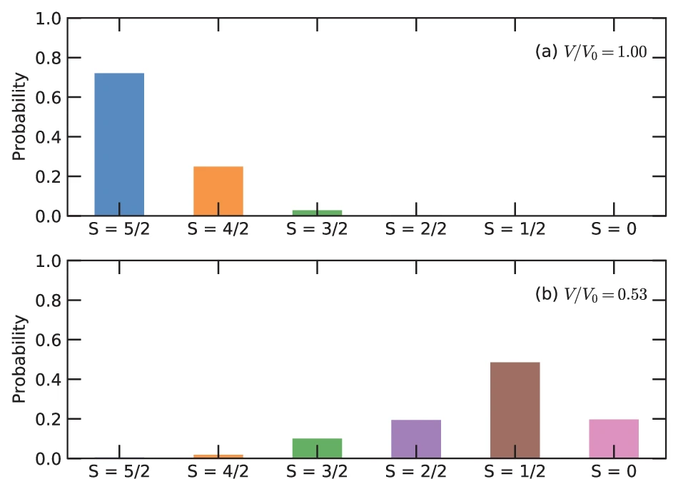 图4:MnO的谱函数(上)及自旋态概率分布(下)