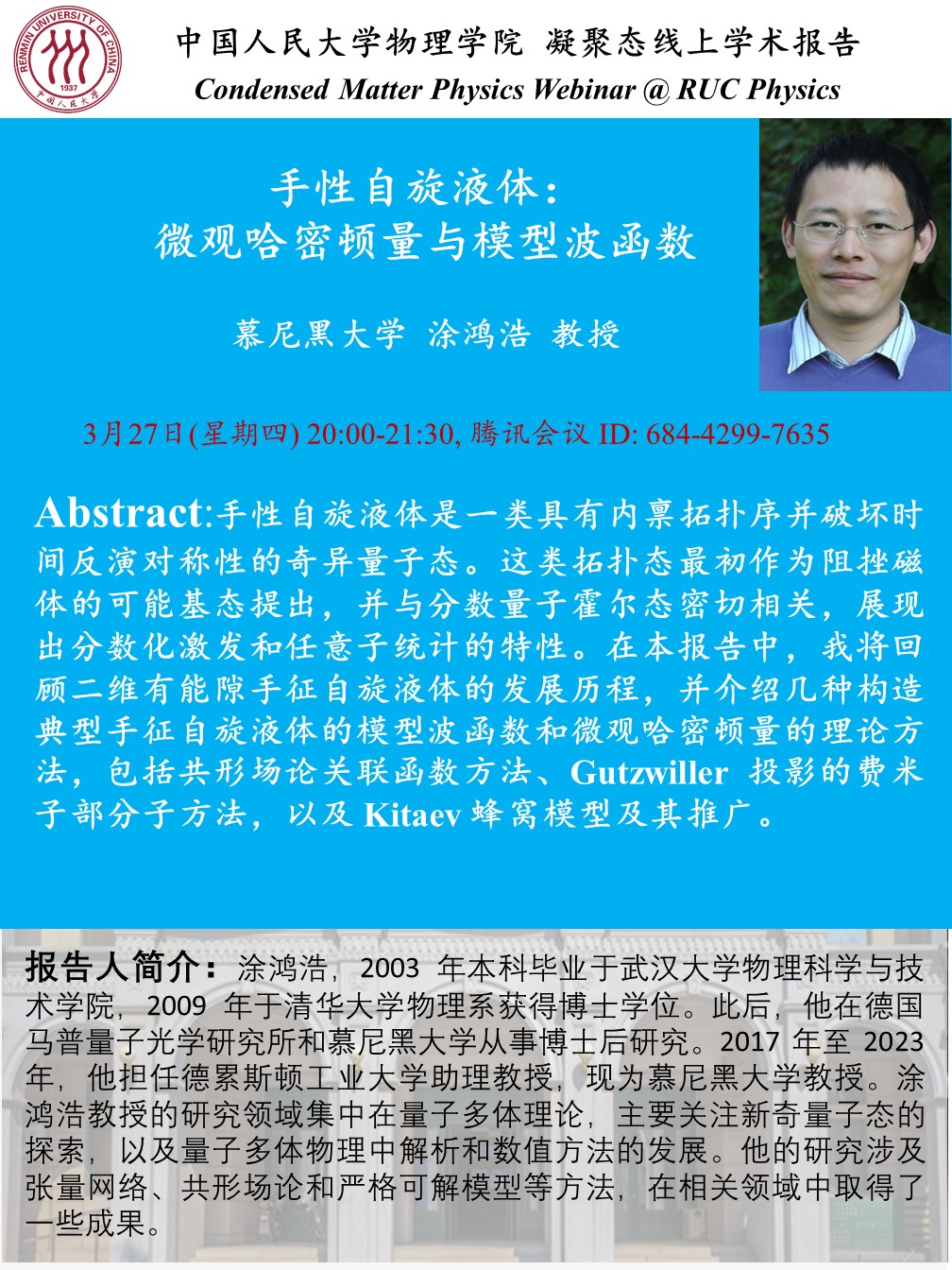 手性自旋液体:微观哈密顿量与模型波函数