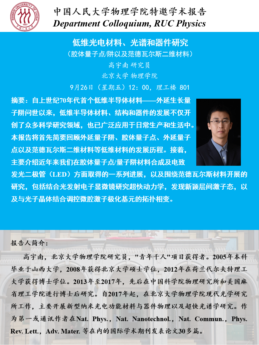 低维光电材料、光谱和器件研究(胶体量子点/阱以及范德瓦尔斯二维材料)